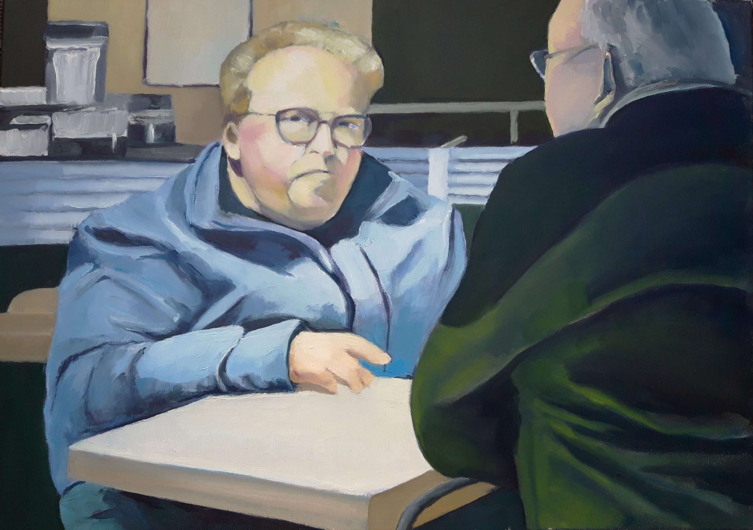 In het visrestaurant – Groningen, 2023 – Olieverf op doek
