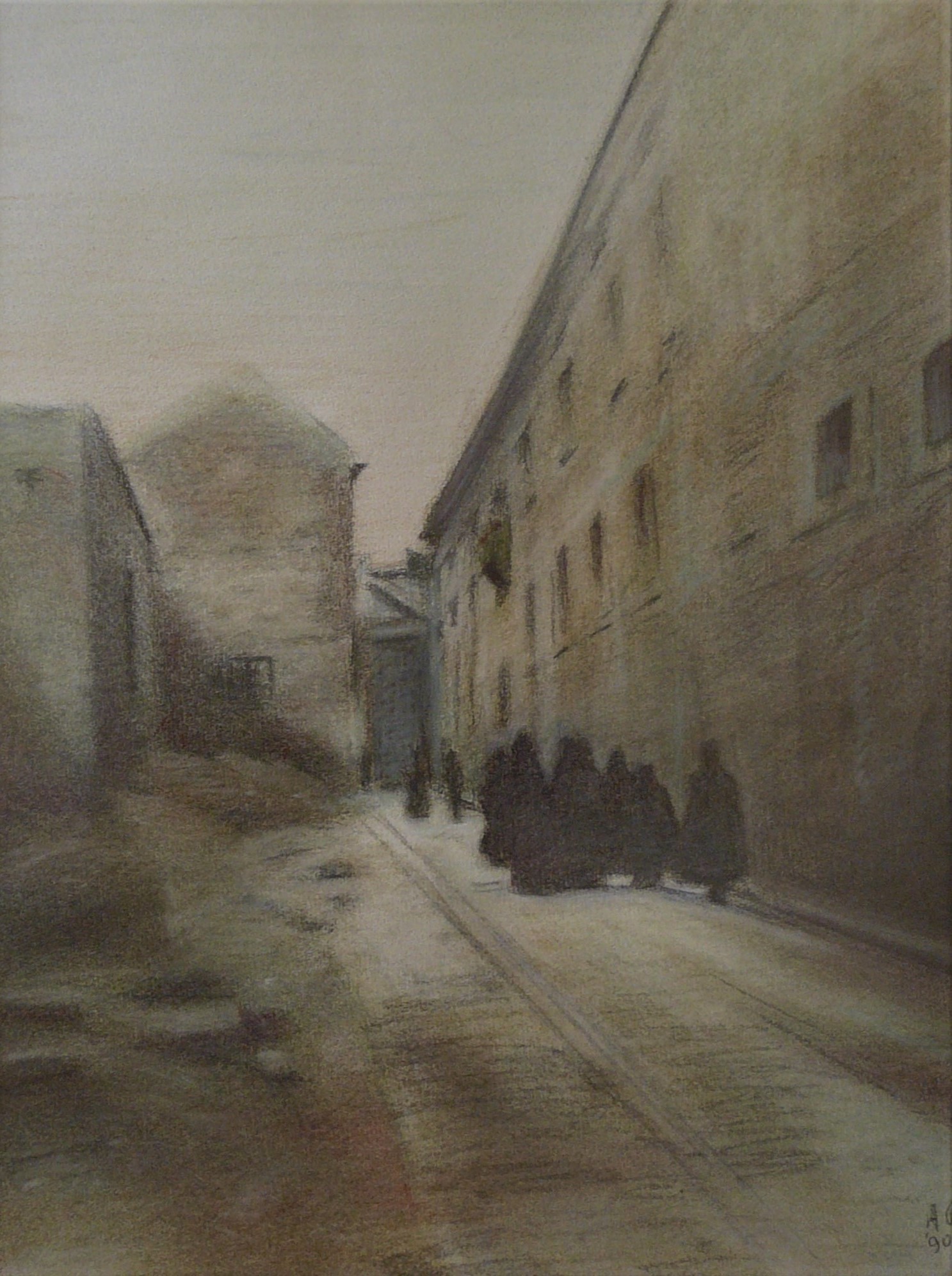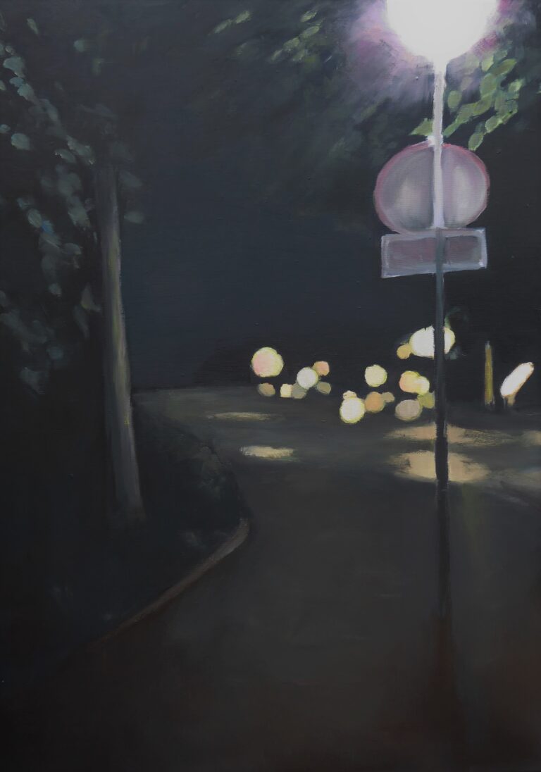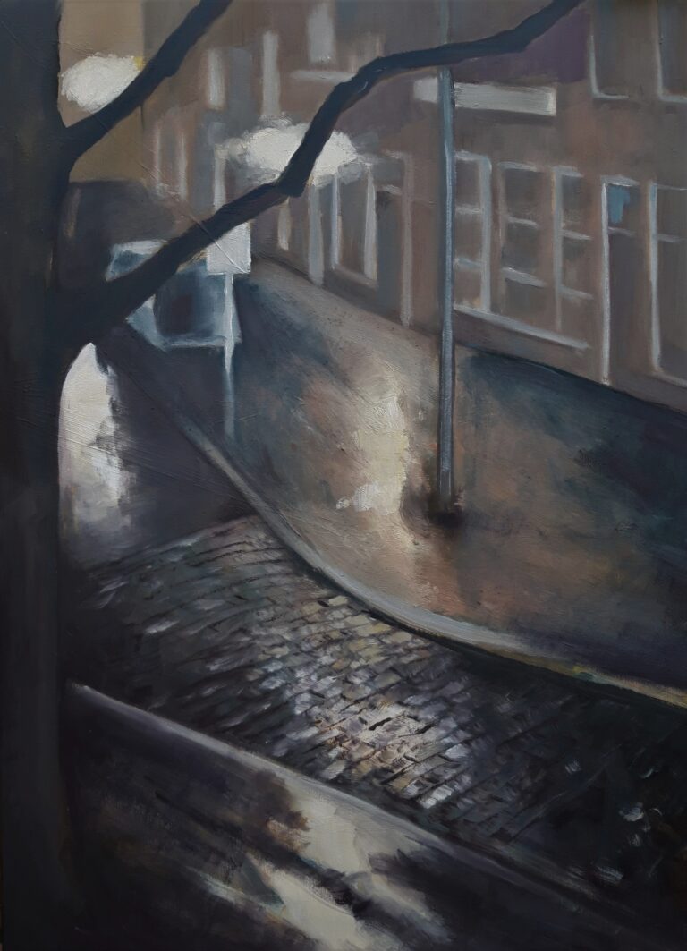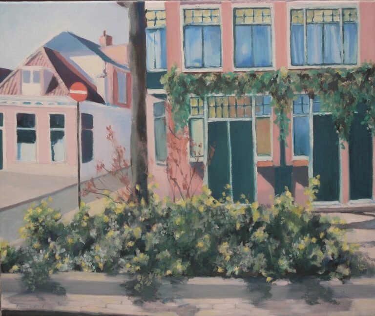 Huizen en straten Hoge der A – Utrecht, 2001 – Acryl op papier Op weg naar? – Utrecht – Pastel Still is the night – Groningen, 2023 – Olieverf op doek Trompstraat in de nacht – Groningen, 2021 – Olieverf op doek Waar wij wonen – Groningen, 2017 – Olieverf op doek Kasteelboerderij – St Jean du Gard – Aquarel